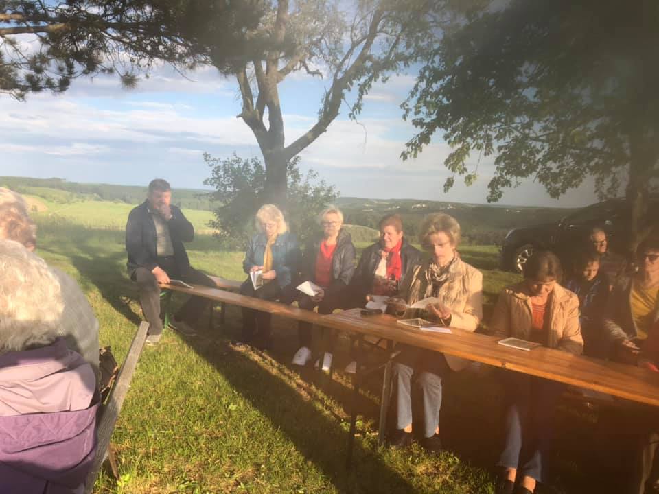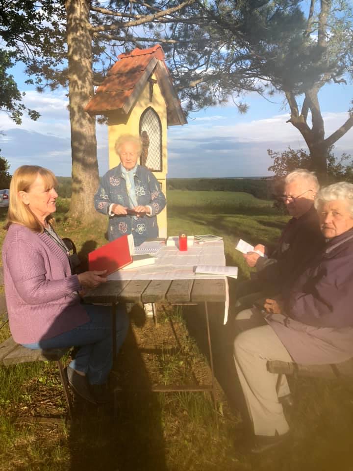 Bei schönem Wetter fand am 23.5.2019 eine Maiandacht in den Nikloerbergen beim Oberst Michael Vass-Bildstock statt. Mit dabei waren Gäste aus Glasing und Ludwigshof.